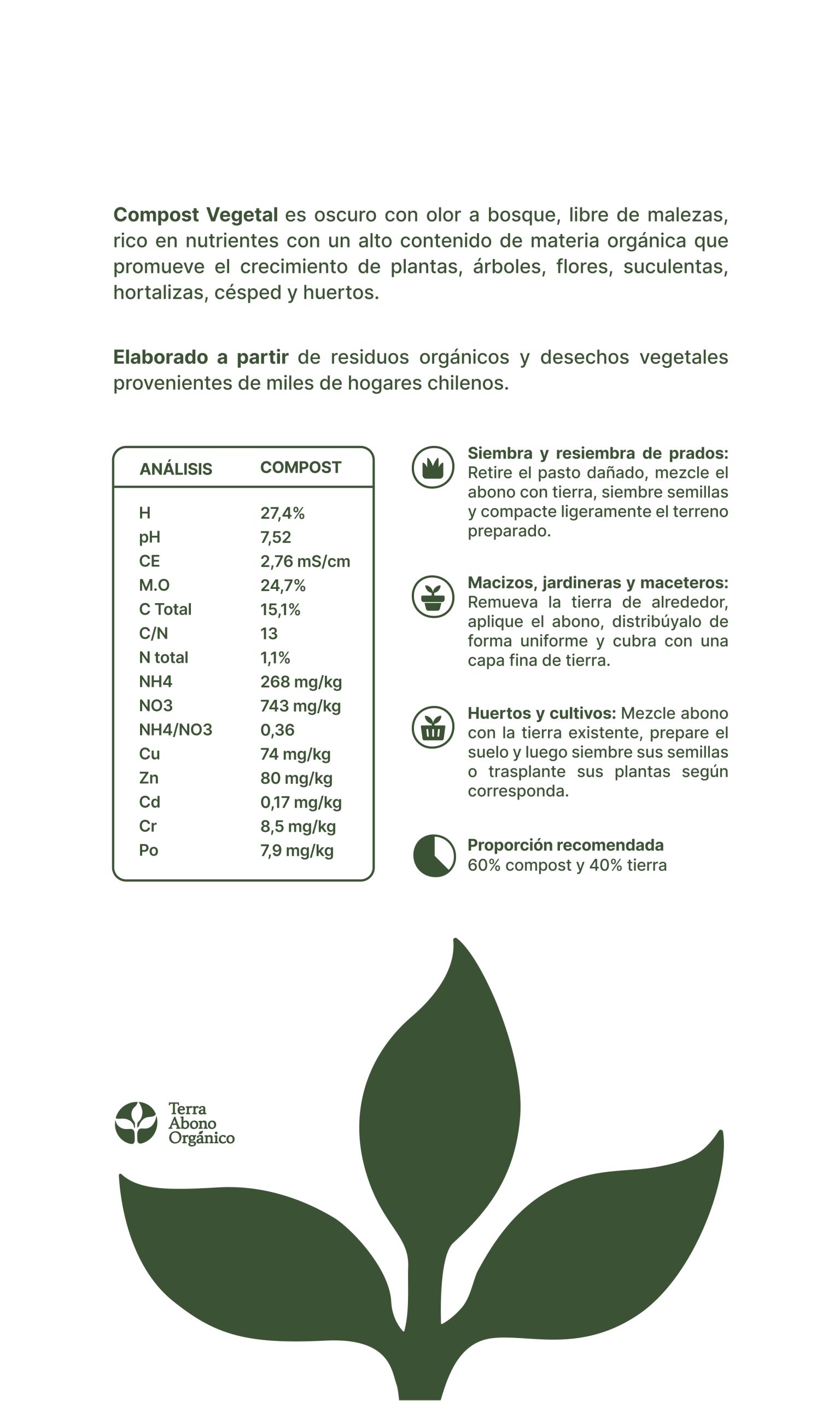 El poder de la naturaleza en tus manos. Nuestro compost vegetal orgánico combina lo mejor del Peumo, Quillay, Eucaliptus y residuos orgánicos para ofrecerte un abono de alta calidad. Ideal para jardines, huertos y cultivos que buscan un crecimiento sano y robusto.